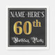 This elegant and ornate birthday-themed paper napkin design features a customizable name and the message “60th Birthday Party”. The large number “60th” has an imitation/faux gold-inspired coloring pattern, and the words “Birthday Party” are in fancy script-style text. The background is colored black by default (although it can be customized). Fancy, opulent paper napkins like this might be used at a birthday party/celebration being held to honor somebody’s sixtieth birthday. [~Z0000565]