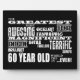 'The greatest most awesome excellent fantastic amazing magnificent super fabulous terrific superb brilliant Sixty year old in the world ....ever!' is a cool modern gift for fun loving Sixty year olds : presented in eye catching combination of always fashionable black and classic stylish white in an urban rock and roll attitute blast of fonts and more fonts.