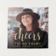 This custom 60th birthday tapestry features the guest of honour's personalised photo, name, and birthday, along with the word "Cheers" in elegant gold-coloured calligraphy script. A dark screen helps make the text pop. A great way to celebrate someone who's turning sixty!