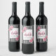 60th birthday pink roses black white stripes wine label