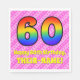 This festive and fun 60th birthday themed paper napkin design features a large number "60" having a colourful pattern inspired by the appearance of a rainbow spectrum. It also features the message "Happy 60th Birthday,", followed by a custom name. The background features a pattern of light pink and dark pink stripes containing loving pink heart shapes. Fun, editable paper napkins like this might be used at a celebration being held to honour somebody’s 60th birthday. [~Z0000417]