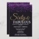 60th Birthday invitation. Sixty and Fabulous. Black Purple and Gold Glitter. Adult Birthday Party. For Men or Women. For further customisation, please click the "Customise it" button and use our design tool to modify this template.