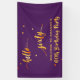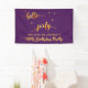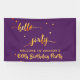 Elegant and modern banner for a 60th birthday party. Purple backdrop and faux gold text written with a trendy hand-lettered style script: hello sixty. With golden dots as decor. Templates for name and the text: Welcome to …. golden letters. You can change the background colour to match your theme. Click customise and then "select a background colour" on your right.