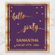 Elegant and modern for a 60th birthday party. Purple backdrop and faux gold text written with a trendy hand-lettered style script: hello sixty with golden dots as decor. Templates for name and date, golden letters. You can change the background colour to match your theme. Click customise and then "select a background colour" on your right.