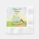 This spring-themed 60th birthday napkin features a daffodil-inspired cake, the flower of March, with a robin perched on a wooden cake stand, creating a cheerful and meaningful design to celebrate a new beginning.