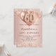 For an elegant 60th birthday. A rose gold faux metallic looking background. Decorated with rose gold, pink faux glitte, sparkles and balloons. Personalise and add a name, and party details. The name is written with a hand lettered style script, number 60 with balloon style fonts.