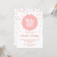 An elegant and glamourous party invitation for a 60th birthday party for a woman. A chic white background. A large rose gold coloured faux sparkles circle with modern hand lettered style text: Hello 60! Rose gold coloured confetti glitter as decoration. Templates for your party information. Golden coloured letters.