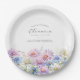 Perfect table decor for a September birthday party. Aster is the birth flower for that month. It forms a pretty watercolor bottom border on this floral personalised paper plate. The birthday guest of honour's name, age and birthdate are placed above it using elegant calligraphy and typography. All text is editable.
