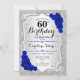 60th Birthday Invitation. Elegant floral design in silver and royal blue. Features faux glitter silver stripes, sapphire roses stylish script font and confetti. Perfect for a glam birthday party.