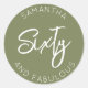60th Birthday Sixty and fabulous Olive Green Classic Round Sticker
