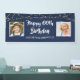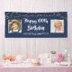 Celebrate a 60th birthday and welcome party guests with this editable blue banner sign with string lights and personalised with two photos HAPPY 60TH BIRTHDAY NAME. EDITABLE COLOR: The blue background colour and text fonts and colour can be changed to coordinate with your party colour scheme by clicking on the CUSTOMIZE tab. PHOTO TIP: For fastest/best results, choose a photo with the subject in the middle and/or pre-crop it to a square shape BEFORE uploading and it will fill the photo space perfectly. Contact the designer if you'd like this design modified, on another product or would like coordinating items to complete your party ensemble.