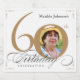 60th Birthday White Gold Calligraphy Custom Photo sparkling wine Label. And elegantly designed special birthday celebration invitation, featuring a custom photo of birthday person and script calligraphy with vintage flourish elements. Simple enough to fit a variety of themes and colours!