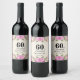 60th Birthday with Flowers on Sparkling Wine Beige Label