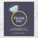 Thank you graphic 60th diamond wedding anniversary gold eternity ring thank you, in dark blue, light aqua diamond blue with a white sparkle, and gold ring. Thank your guests for coming to your sixtieth-anniversary party or dinner with these personalised wine labels idea to add to your wine favours. Other matching items are available. Original graphic by Sarah Trett for www.mylittleeden.com and www.mylittleedenweddings.com on Zazzle.