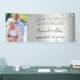 A banner celebrating a 60th wedding anniversary. An elegant faux silver coloured background decorated with faux diamonds. Personalise and add your own photo of the happy couple. The text: The names is written with a black modern hand lettered style script. Tempates for names and a date. Can be used as a party welcome sign, party wall decoration and a keepsake.