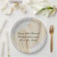 Surprise your guests with these elegant paper plates made with white, faux lace trim on upper left and lower right sides. Off-white, faux satin background underneath. Black customisable text. Faux diamond accent that can be kept or deleted.