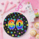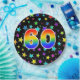 This cheerful, fun, and colourful paper plate design features a large number "60" having a rainbow spectrum gradient inspired pattern colouring. The background features a pattern of colourful star shapes. Fun paper plates like this might be used at a celebration being held to honour somebody’s 60th birthday, or a couple’s 60th anniversary, or some other 60th event. [~Z0000493]