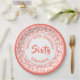 This over-the-hill design has a coral and white random number pattern with the coral milestone number 60 'repeated in varied sizes and angles for an all-over print. There is a white circle in the centre for your text and coral and white rings around the rim.