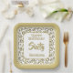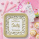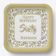 This over-the-hill design has a gold and white random number pattern with milestone number 60 repeated in varied sizes and angles. There is a white rounded square in the centre for your text and gold and white around the rim.