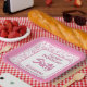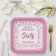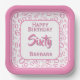 This over-the-hill design has a pink and white random number pattern with milestone number 60 repeated in varied sizes and angles. There is a white rounded square in the centre for your text and pink and white around the rim.