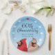This personalized paper plate makes a cheery decoration for a couple celebrating a 60 year wedding anniversary! A pair of cardinal birds pops up below elegant script text that reads, "60th Anniversary" and two names and a wedding date which can be customized. Hearts form a circular border around the plate.
