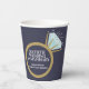 Diamond and gold ring modern fun fact and wedding anniversary party paper cups. Personalise these anniversary cups with your own name and fun facts about your couple. Other matching items are also available. © Original graphic ring design by Sarah Trett for www.mylittleeden.com and www.mylittleedenweddings.com on Zazzle.