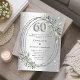 A faux silver looking background. An oval silver frame decorated with sage green greenery and faux diamonds. Personalise and add your names, details. Black text.
