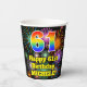 61st Birthday: Fun Fireworks Pattern + Rainbow 61 Paper Cups