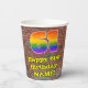 This vibrant and exciting urban graffiti and street art themed birthday paper cup design features a large number “61” with a colourful rainbow spectrum gradient inspired pattern, along with the message “Happy 61st Birthday,”, and a personalised name. The background features a brick wall pattern. Vibrant, colourful paper cups like this might be fun to use at a birthday party being held to celebrate somebody’s sixty first birthday. [~Z0000543]