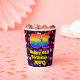 This joyful and colorful birthday-themed paper cup design features a large number “61” having a rainbow spectrum gradient inspired pattern. It also features the message “Happy 61st Birthday,”, and a customizable name. The background features a pattern of purple, red, and pink heart shapes. Loving, joyful paper cups like this might be fun to have at a birthday party being held to celebrate somebody’s 61st birthday. [~Z0000548]