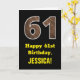 61st Birthday: Name, Faux Wood Grain Pattern "61" Card