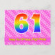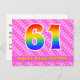 61st Birthday: Pink Stripes & Hearts, Rainbow 61 Postcard