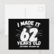 62 Year Old Sarcastic Meme Funny 62nd Birthday Postcard