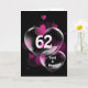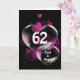 Pink hearts and white translucent heart-shaped bubbles for 62nd anniversary on black background.