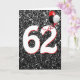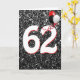 Red, white and black balloons on black glitter background for 62nd birthday.