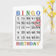 62nd Birthday card. Say Happy Birthday to a bingo player with a bingo card. The age is circled in red. A bingo crazy player will get a huge kick out of this card! Copyright Norma Cornes.