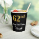 This stylish, sophisticated, and luxurious birthday-themed paper cup design features a large ordinal number “62nd” having an imitation/faux gold-like appearance, plus the birthday greeting message “Happy 62nd Birthday,” and a personalised name in a script-style font. The background is coloured black. Luxurious paper cups like this might be fun to use at a birthday party being held for somebody who is celebrating their sixty second birthday. [~Z0000538]