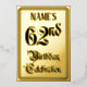 The front of this opulent sixty-second birthday party foil announcement/invitation card design features the message “62nd Birthday Celebration” in elegant script-style text. It also features an editable name. The back features personalised details about the event, such as the date, time, place, and any other information that may be important. Ornate, fancy, customised invitations like these might be used to invite guests to a birthday party being held to honour somebody’s sixty-second birthday. [~Z0000596]