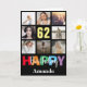 62nd Happy Birthday Photo Collage Modern Black Card with personalised name. For further customisation, please click the "Customise it" button and use our design tool to modify this template.