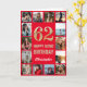 62nd Happy Birthday Red and Gold Photo Collage Card