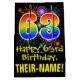 This fun, colourful, and exciting birthday themed giftbag design features a large number "63" with a rainbow spectrum gradient inspired pattern, along with the message "Happy 63rd Birthday,", and an editable recipient name. It also has a colourful background pattern inspired by the appearance of bursting celebratory fireworks. A birthday themed gift bag like this might be a fun way to wrap a gift or present being given to celebrate somebody’s sixty third birthday. [~Z0000509]