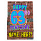 The front of this fun birthday-themed gift bag design features the message “HAPPY 63RD BIRTHDAY,” having a colourful, vibrant, graffiti and urban street art inspired appearance, plus a custom recipient name. The background features a pattern inspired by the look of a brick wall. A colourful gift-bag like this might be a fun way of wrapping a birthday present or gift being given to somebody who is celebrating their 63rd birthday. [~Z0000536]