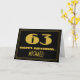 The front of this vintage style and Roaring Twenties inspired birthday themed greeting card design features a large art deco style inspired number "63", the message "HAPPY BIRTHDAY,", an editable name, and a border pattern consisting of lines. The front also has a black-colored background. The inside features a custom birthday greeting message, or could perhaps be cleared and left blank if a message is to be written by hand instead. A custom birthday card like this might be a fun way to send birthday wishes to somebody who is celebrating their sixty third birthday. [~Z0000506]