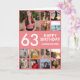 63rd Birthday Photo Collage 13 Photos Pink & White Card