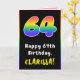 64th Birthday: Colourful Rainbow # 64, Custom Name Card