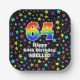 64th Birthday: Fun Stars Pattern and Rainbow “64” Paper Plate