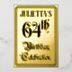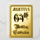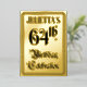 The front of this elegant sixty-fourth birthday party/celebration foil invitation/announcement card design features the message “64th Birthday Celebration” in fancy script-style text. It also features a custom name. The back features personalised details about the event, such as the date, time, location/venue, and any other useful information. Elaborate, luxurious, customised invitations like these might be used to invite guests to a birthday celebration being held to honour somebody’s 64th birthday. [~Z0000596]