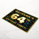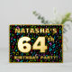 The front of this upbeat and exciting sixty-fourth birthday party foil invitation card design features a personalised name, a large number “64th”, the message “BIRTHDAY PARTY!”, and a border. The background of the front has a vibrant, multicolored pattern of musical symbols and notes. The back features personalised details about the event, such as the date, time, location/venue, and any other important information. Customisable invitations like these might be a fun way to invite attendees to a birthday party being held to celebrate somebody’s 64th birthday. These might be more meaningful for a music-themed birthday party. [~Z0000601]