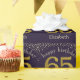 Number 65 in simulated glitter gold with falling diamonds on solid deep dark purple. Happy Birthday in open face off-white font. Personalise with recipient's names or personal message.
