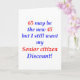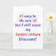 65 may be the new 45 but I still want my Senior Citizen Discount! Humourous disign for the 65 year old who sees the humour in getting older. Makes a great 65th birthday gift.